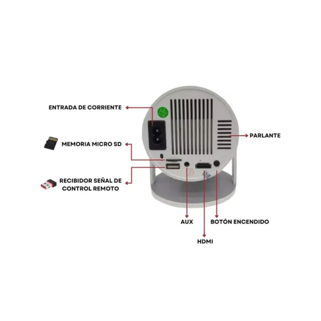 - Conexiones: Aux, Hdmi, Ranura para Tarjeta Micro SD, USB